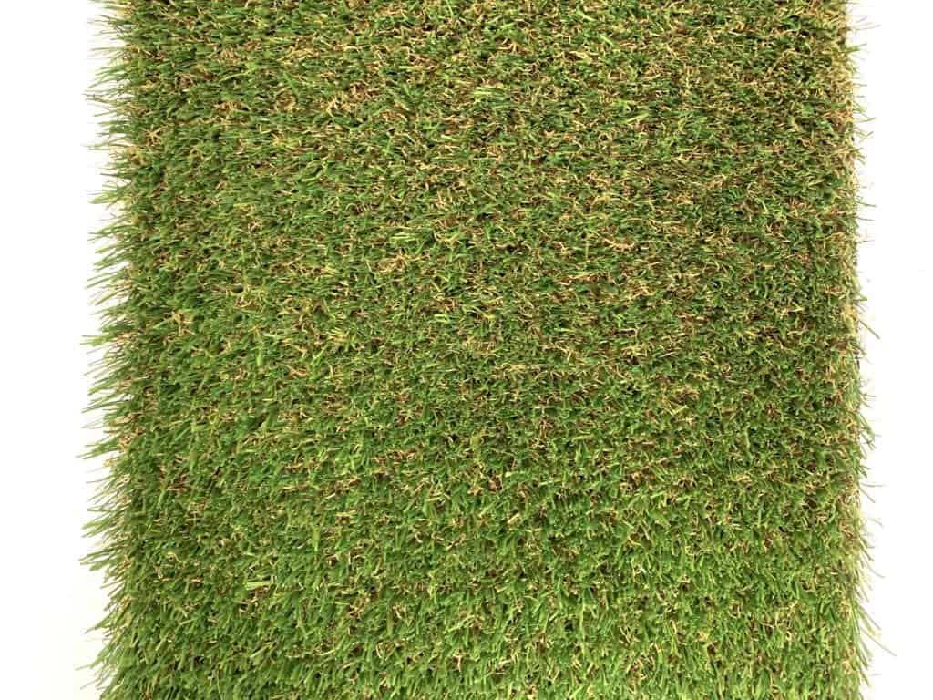 This pet turf option also comes with a shorter height of 1.125" Making it a very easy to maintain. You can see the main difference in this product is the thatch color. The thatch is a blend of brown and beige which mimics the "dead" layers of grass you typically see beneath the green real grass blades. This option is very popular with customers who are searching for a very authentic fake grass product.